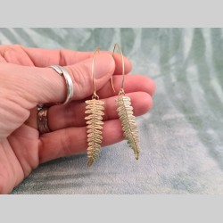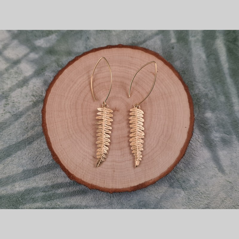 Boucles d'oreilles folioles de feuilles de fougère - plaqué or