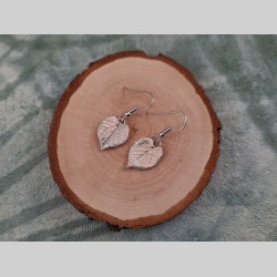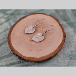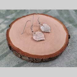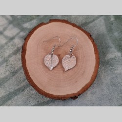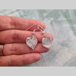 Voici des boucles d’oreilles créées à partir de feuilles de tilleul en coeur.