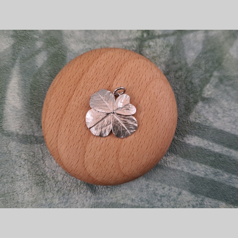 Pendentif créé à partir d'un véritable trèfle à quatre folioles.