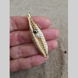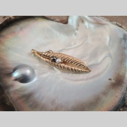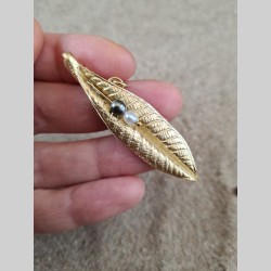 Pendentif feuille de frangipanier avec deux véritables perles keshis de Tahiti - plaqué or