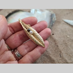 Ce pendentif fait partie de ma collection Tahiti-Nyon, inspirée par des perles noires de Tahiti et des feuilles de frangipanier rapportées par ma tante habitant Papeete depuis plus de 30 ans, ainsi que par des coquillages ramassés aux abords du lac Léman à Nyon, ma ville.