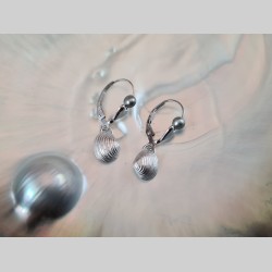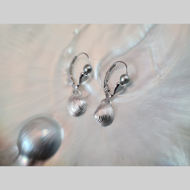 Boucles d'oreilles coquillages du Léman avec véritables keshis de Tahiti