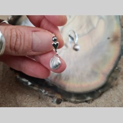 Boucles d’oreilles créées à partir de coquillages ramassés au bord du lac Léman, à Nyon avec deux jolies keshis de Tahiti.