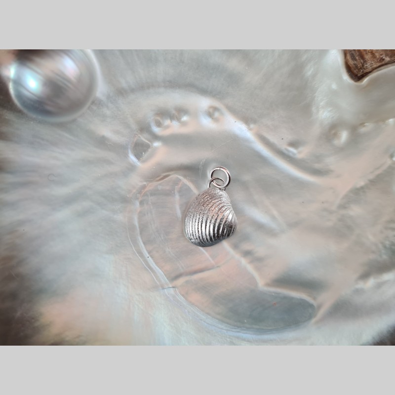 Pendentif créé à partir d'un véritable coquillage du lac Léman en argent rhodié.