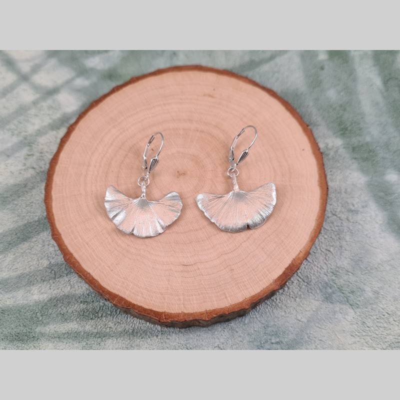Voici des boucles d’oreilles créées à partir de feuilles de ginkgo.