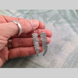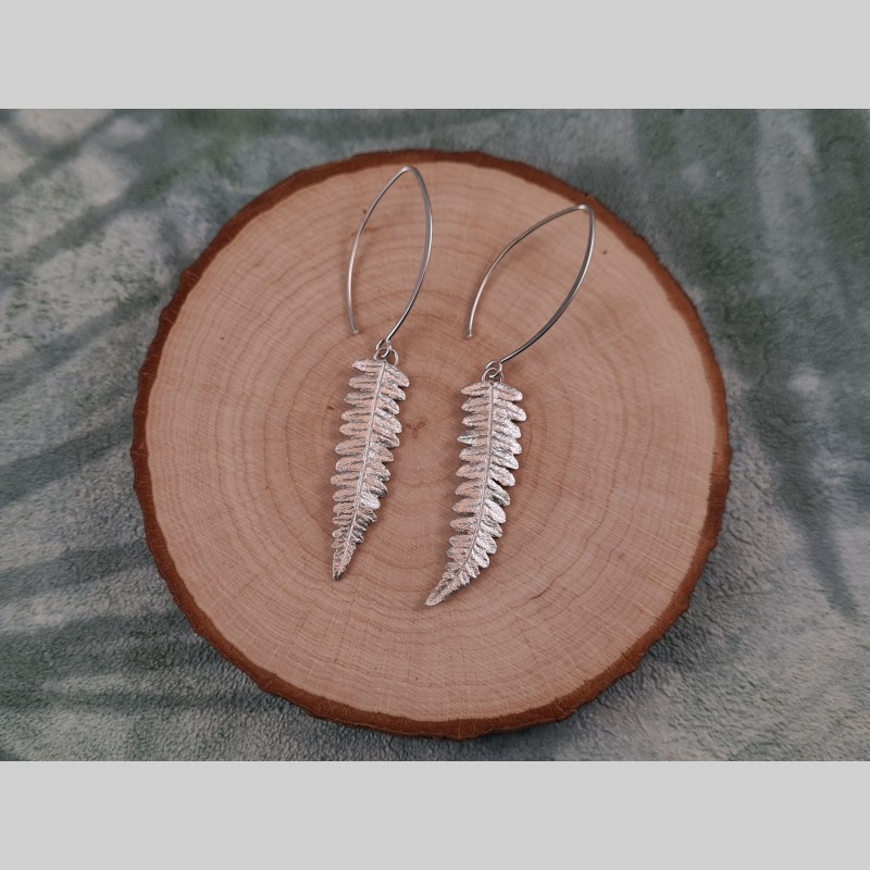 Boucles d’oreilles créées à partir de folioles de feuilles de fougère.