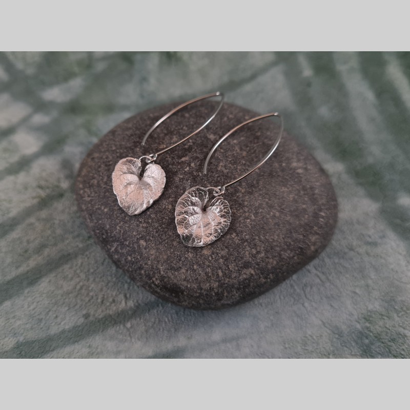 Boucles d’oreilles créés à partir de feuilles de violette.