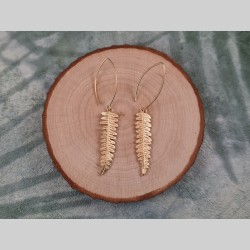 Boucles d’oreilles créées à partir de folioles de feuilles de fougère.