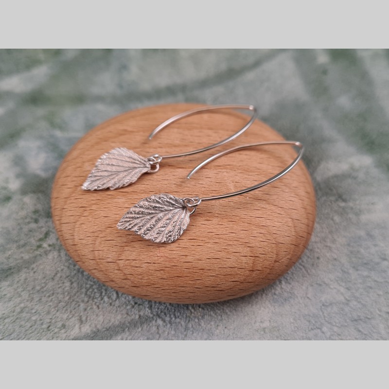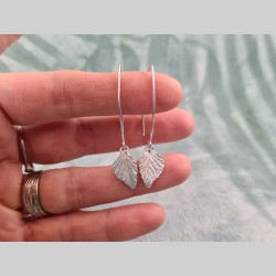 Boucles d’oreilles créés à partir de folioles de feuilles de framboisier.