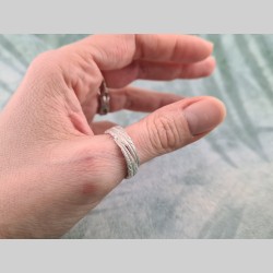 Cette bague est en taille 58, si cette grandeur ne conviendrait pas et que vous n’en trouverez pas à votre taille sur le site contactez-moi, il se pourrait que j’en ai encore en cours de création, ou que je puisse vous en créer une à votre taille, dépendant de la saison.