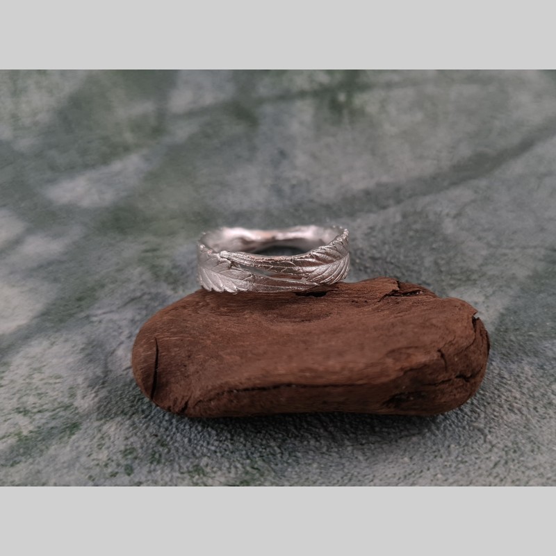 Bague créée à partir de deux folioles de chanvre s'enroulant autour de votre doigt.