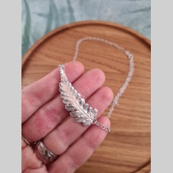 Collier créé à partir d'une foliole de fougère, avec chaînette réglable sur n'importe quelle longeur. Vous pouvez donc le porter en ras-de-cou ou plus long, suivant votre humeur et le style de votre encolure.