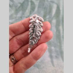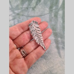 Cette foliole de fougère peut être portée soit en pendentif, soit en broche, car elle possède deux attaches distinctes (voir photos).